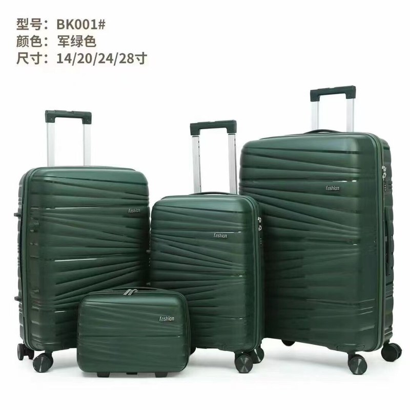 Dużą zaletą jest również trwałość walizki bagażowej PP, wykonanej z wysokiej jakości materiału PP o doskonałej odporności na uderzenia i zużycie.Trzymaj swój bagaż nienaruszony, nawet jeśli w czasie długiej podróży spotkasz się z uderzeniami lub zderzeniamiPonadto materiały PP mają również dobrą odporność na warunki pogodowe i mogą utrzymywać stabilną wydajność w trudnych warunkach środowiskowych.